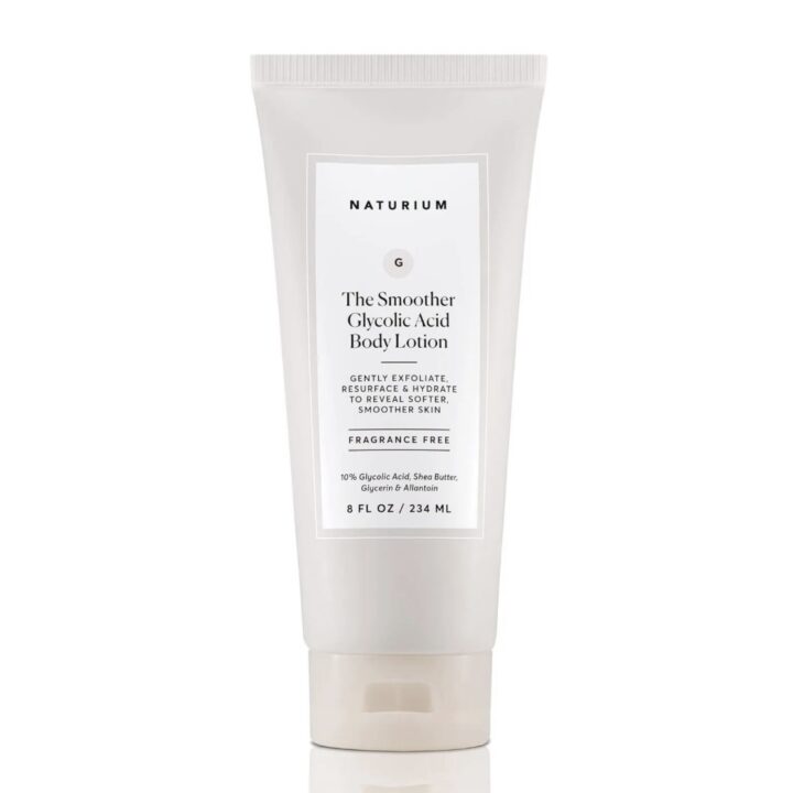 Naturium’s The Smoother Glycolic Acid Body Lotion helps reduce the appearance of dark spots Targets uneven skin tone Relieves areas of rough, dry skin